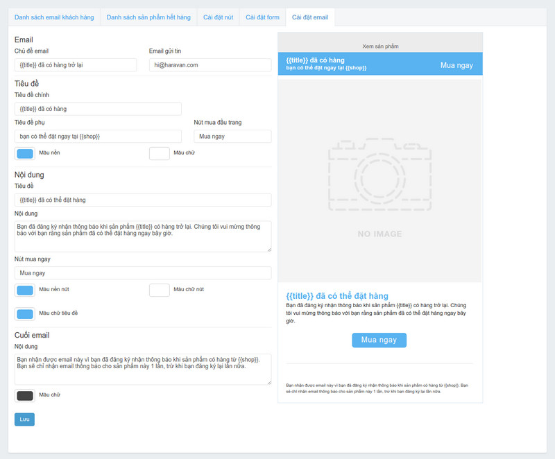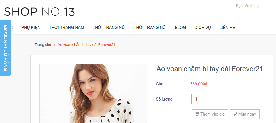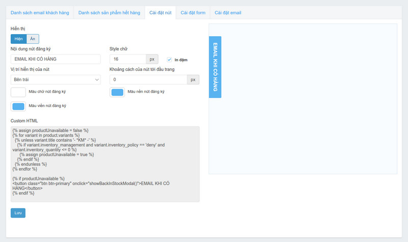Nội dung nút đăng ký: Bạn có thể tùy chọn nội dung (email khi có hàng, email khi hết hàng,….)