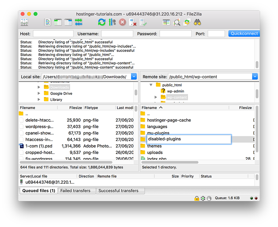 Sau khi tải file .htaccess về máy, xóa file này trên server