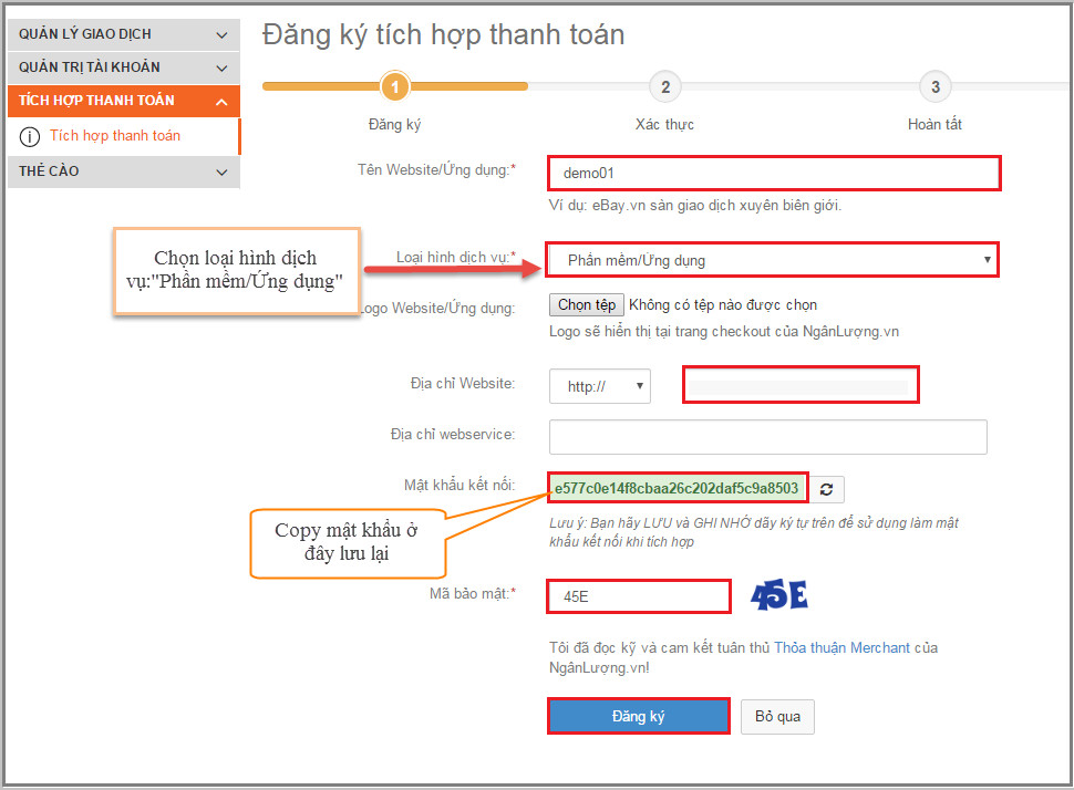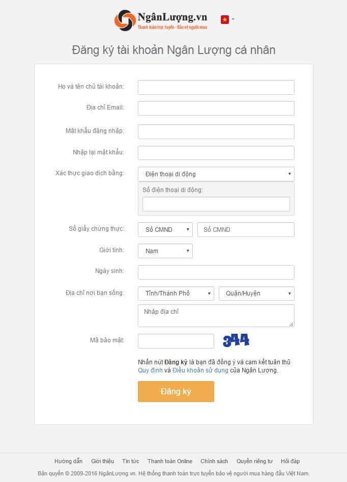 Bước 1: Đăng ký website tích hợp qua ngân hàng tại nganluong.vn