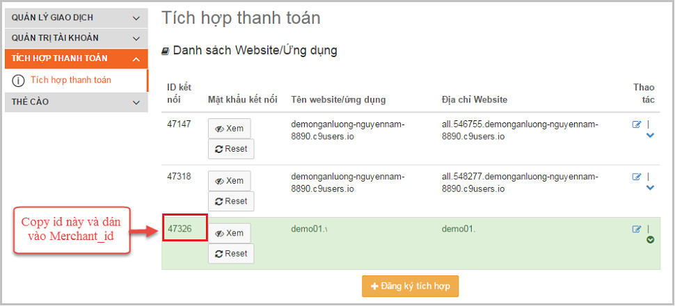 Sau khi đã đăng ký website tích hợp qua Ngân Lượng, các bạn bắt đầu thao tác để tích hợp cho website của mình.