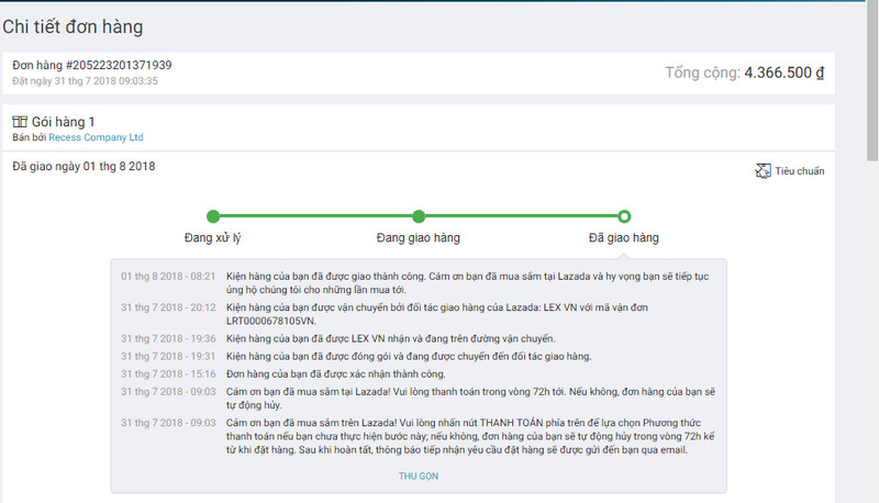 Kiểm tra đơn hàng Lazada đã giao hay chưa?