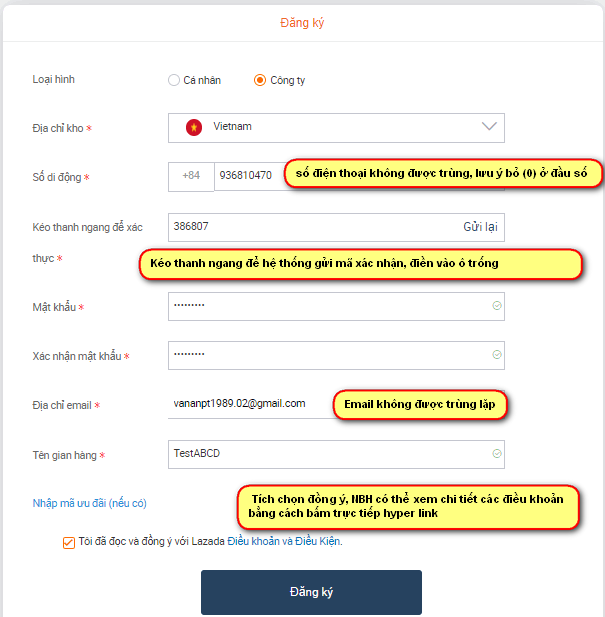 Đăng ký tài khoản trên Lazada