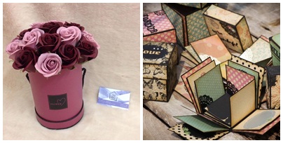 Hoa sáp và hộp quà làm bằng thủ công