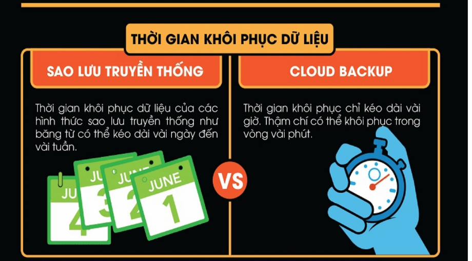 Sự khác nhau về thời gian sao lưu dữ liệu truyền thống và cloud backup