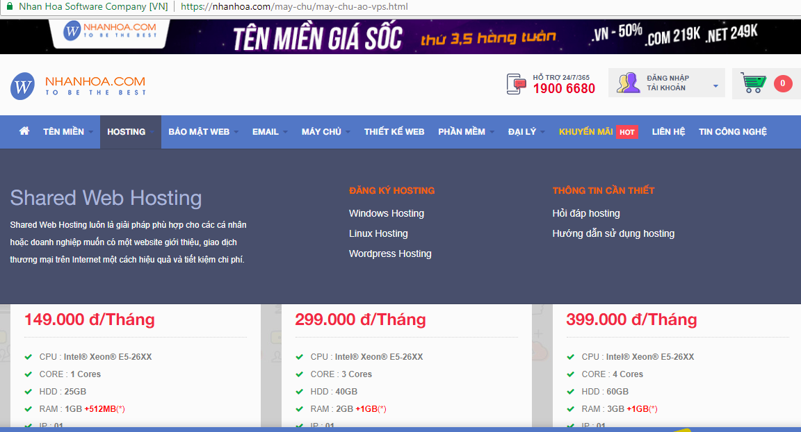 Trang web Nhân Hoà – Dịch vụ Hosting