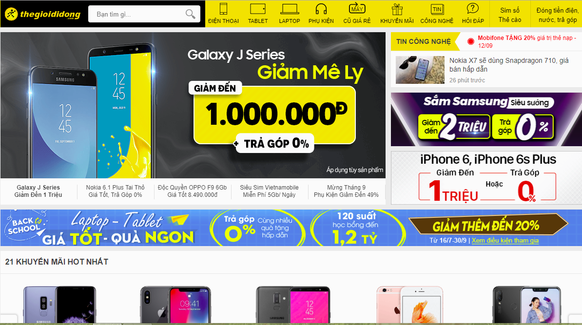 Nếu nhắc đến các trang web đẹp thương mại điện tử được nhiều người truy cập nhất hiện nay không thể không nhắc đến trang web của thế giới di động. Giao diện đẹp, bố cục rõ ràng các sản phẩm được trình bày theo thứ tự cũng như chia danh mục để quản lý người dùng chỉ cần một số thao tác nhỏ là có thể sử dụng mua được sản phẩm ưa thích của mình.